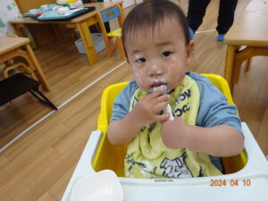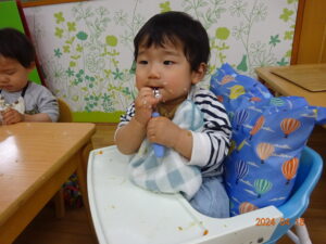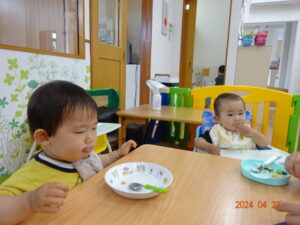 初めての給食!緊張している子もいたけど、もりもり食べている子も😋