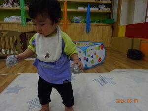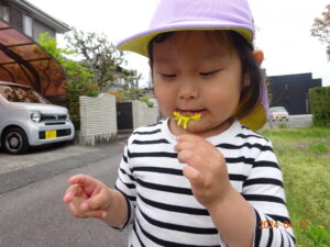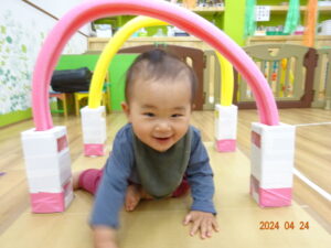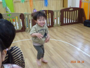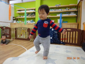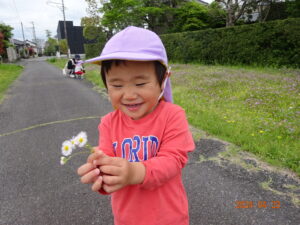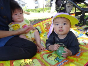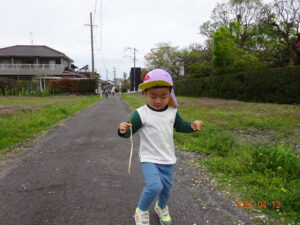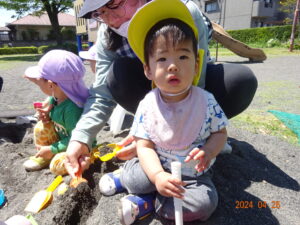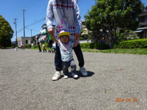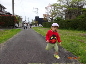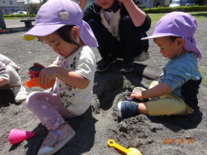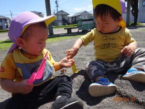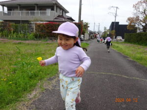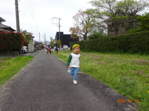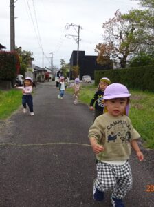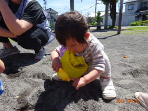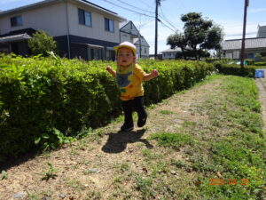 泣いていた子もお散歩に出ると、ピタッと泣きやみ、走ったり、お砂場遊びをしたり