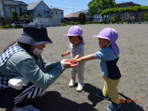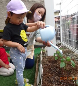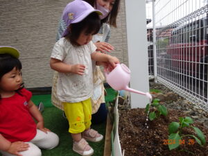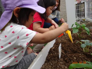 2歳児ぱんだ組:みんなで夏野菜を植えたよ!(オクラ・ピーマン)