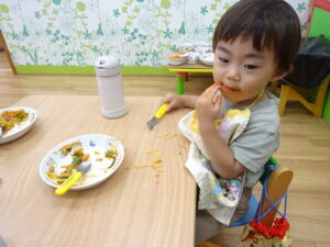 僕たちも給食もりもり食べてるよ!暑さになんか負けないぞ!