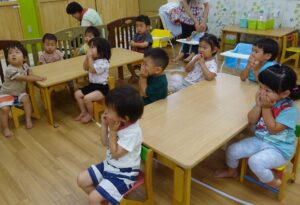 子どもたちは鼻と口を手で覆い上手に避難できました!