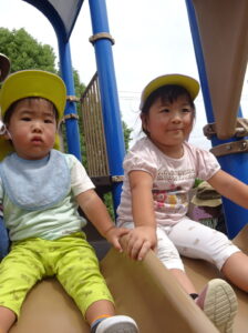 公園に着いてからは滑り台やヨーイドン!をしてたくさん遊びました。