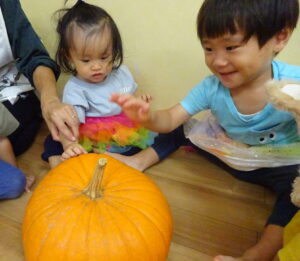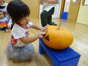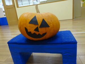 玄関に飾っていたかぼちゃは、ぱんだぐみさんが顔を作ってくれたものだったんです!