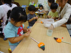 自分で目と口のシールを貼りました。