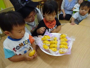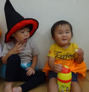 今日は仮装したままおやつを食べました。美味しかったね!