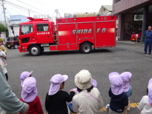 大きな消防車を目の前で見ることができと~っても嬉しそうな子どもたち😊