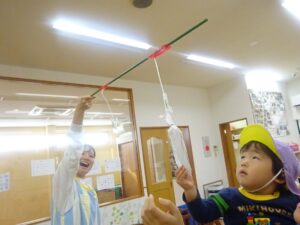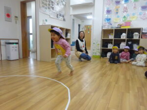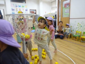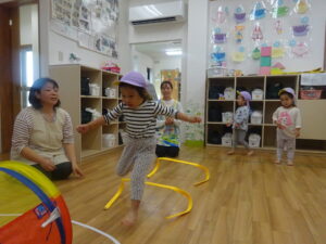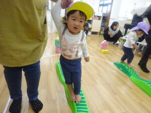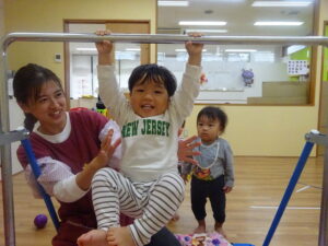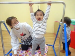運動遊びでは、鉄棒のぶら下がりやハードルに挑戦!