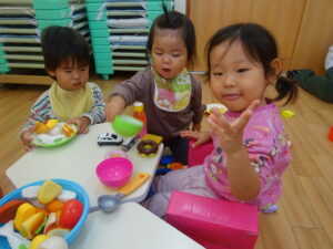 ぱんだぐみさんの真似をして上手にお茶をいただきました🍵