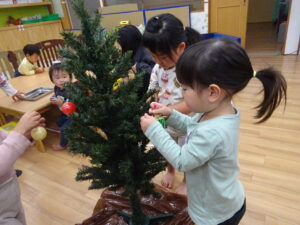 クリスマス会に向けて園内もクリスマスモード一色です!