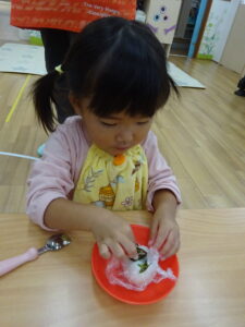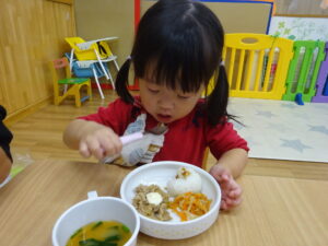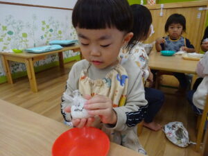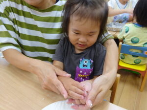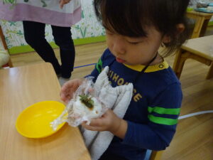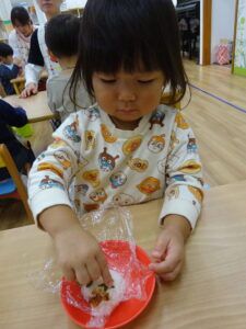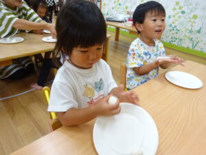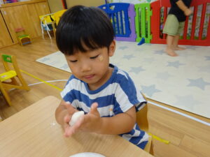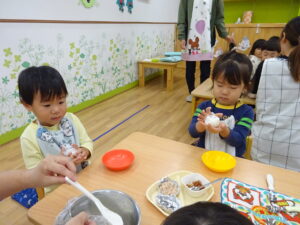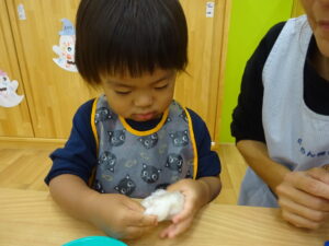 いよいよお団子づくり!まだ小さい子どもたちなので、お団子は柔らかくなるように、お豆腐も入れました★