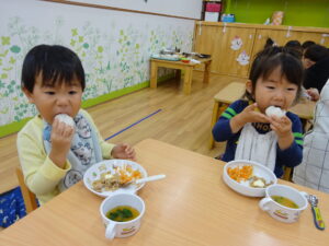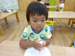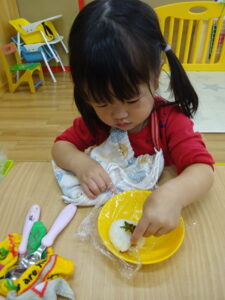 前日にぱんだ組のみんながおにぎりの材料を買いに行って来てくれたよ!