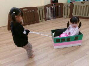 お友達と関わることが増え、遊びに誘う子もいます。