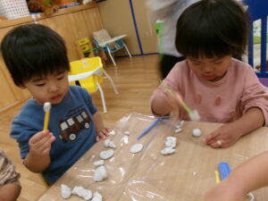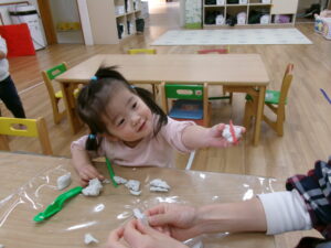 粘土遊びではとても集中していろんなものを作っていたり、