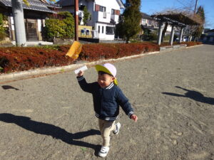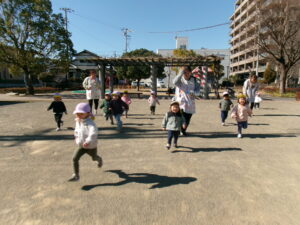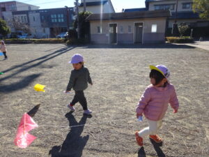 凧あげをしない日は一度たくさん体を動かし温めてから遊びます。