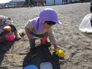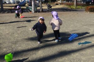 日向の砂場遊びはポカポカして気持ちいいですね。