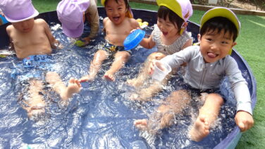 夏はおもいっきりプールあそびをしたよ👙✨ 水風船のおもちゃが人気✨水をはじいて割るのを楽しんでいました! 噴水シャワーも大好き!上から水が来ると「キャー」と踊りだします🌊 シャワーに「これはなん...