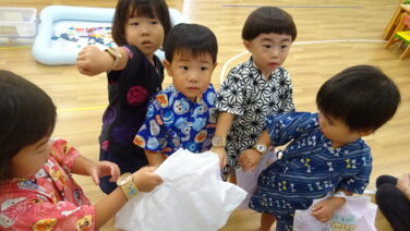 8月も終わりに近づいた頃・・・ 夏まつりをしました! 「今からなつまつりが始まるんだって~」と ドキドキ・ワクワクの子どもたち 笑顔がいっぱいです😍😍 さあ~!まずは盆踊りからスター...