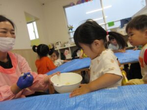 先生が作った小麦粉粘土を観察しました。