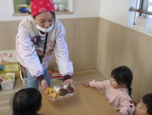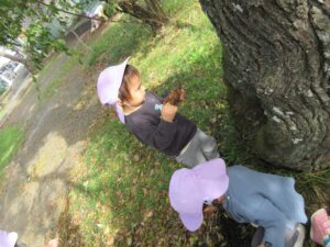 11月の食育はきのこ!みんな、真剣?なんだろう?の表情を見せてくれていました。