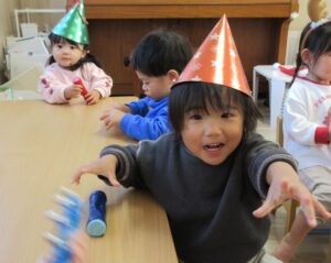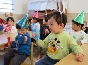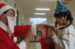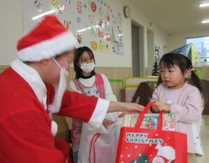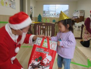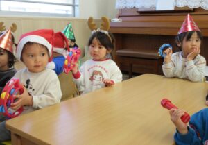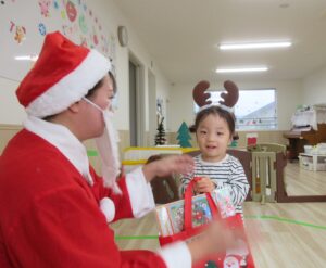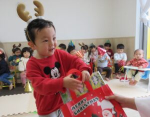 クリスマス近くなり、装飾や製作などを通して、だんだんと雰囲気を感じ、プレゼントの話からワクワクした表情の2歳児クラスのお友だち。どんなプレゼントをもらったのかな?