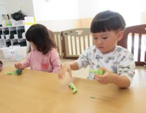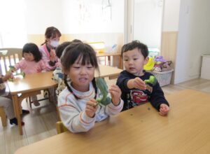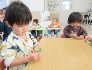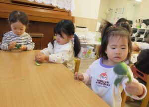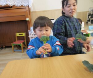 今月の食育はブロッコリー!どんなにおいがするかな?触った感じは?そんな体験しましたよ。