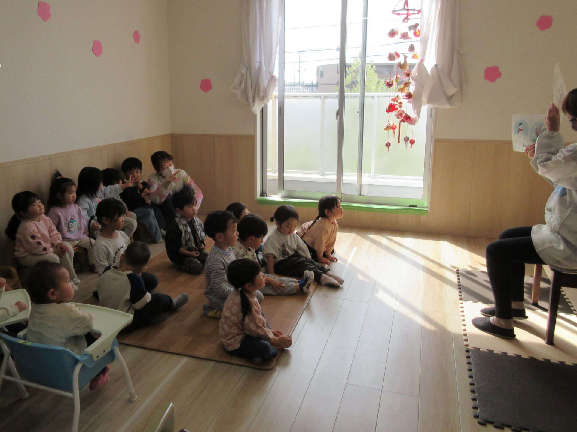 おひなさまの由来やうたをみんなで歌いました。