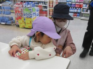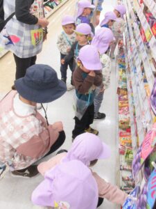 5日は、ぱんだ組さんがお別れ遠足のお菓子を買いに行きました。