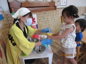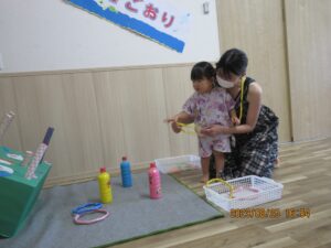 未分類今年の夏祭りはお迎えの時間帯に行い、保護者の皆様にもご参加いただきました。