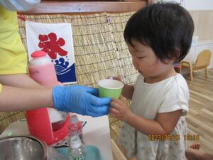 今年の夏祭りはお迎えの時間帯に行い、保護者の皆様にもご参加いただきました。