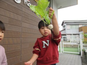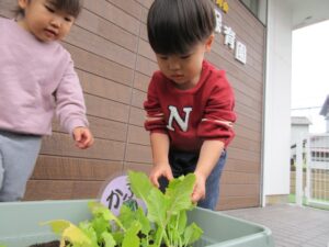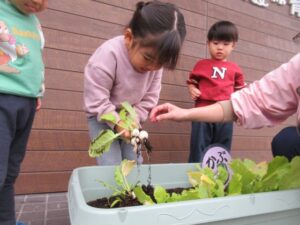 ぱんださんが園庭のプランターで育てていたかぶを収穫しました。