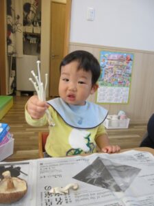 きのこの匂いを嗅いだり、触ってみました。