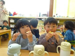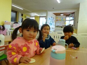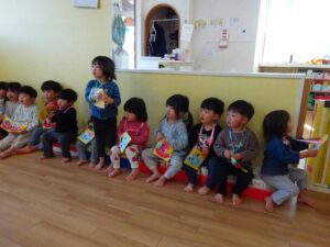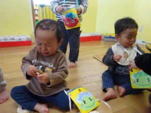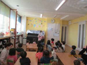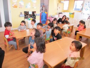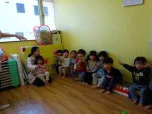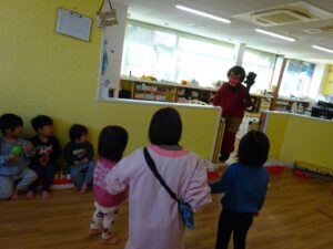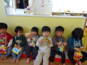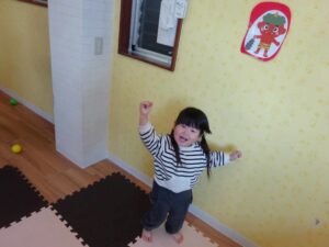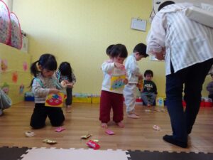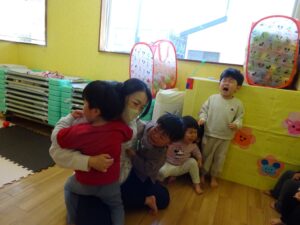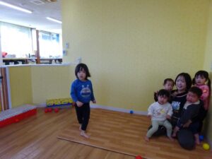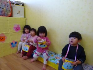 皆で鬼のパンツを踊ったり、豆(ボール)を投げる練習も