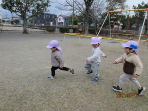 公園ではしっぽとり、むっくりくまさんで走り回ったり、探検やブランコを楽しんだりしました。