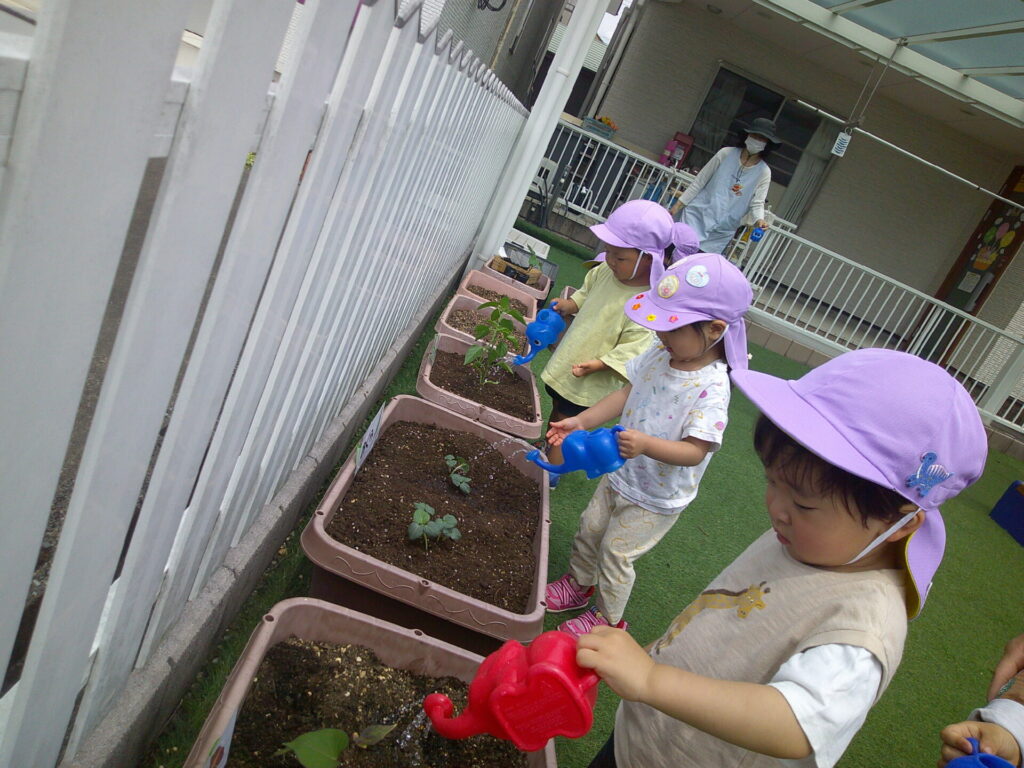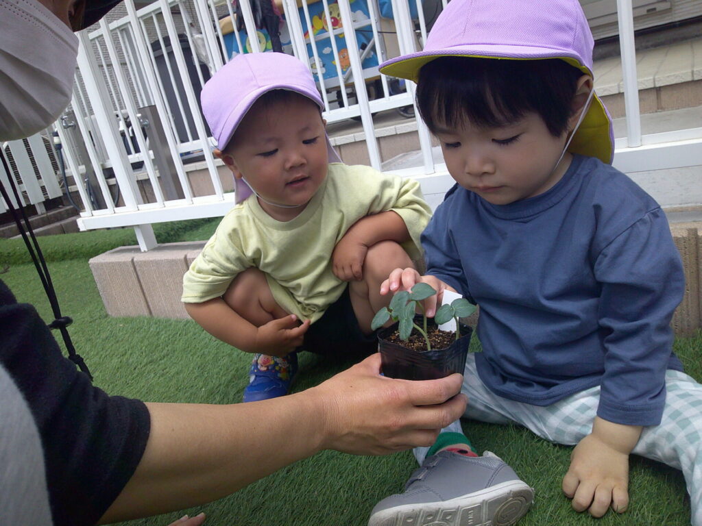 ぱんだ組さんが野菜の苗植えとお花の種まきをしました!