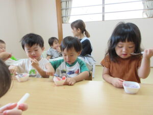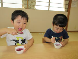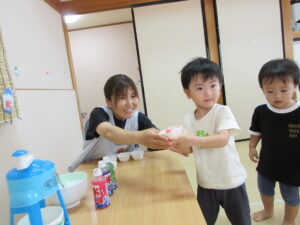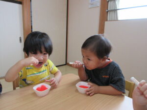 美味しすぎてあっという間に食べてしまう子、冷たさにビックリする子もいましたが、みんなで夏を楽しむことが出来ました🍧