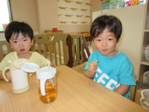 自分たちで作ったフルーチェの味は格別✨すぐにおかわりコールでした😊