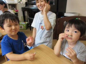いつも食育活動に積極的なすばる保育園のお友達。