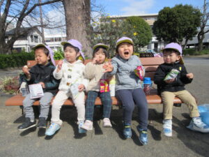 2名のぱんだ組さんがお休みで残念でしたが、残りの園生活もみんなで楽しく過ごしていきたいと思います