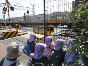 いよいよお別れ遠足に出発!行き先は、踏切で電車を見に行き、駅前公園へ!!