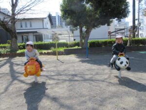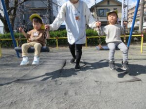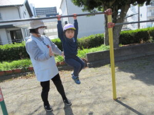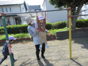 自分の好きな遊具を次々に遊び、「こっちおいで~」と、誘い合ったり、かくれんぼや鬼ごっこも、子どもたちから始まり、みんなで思いっきり楽しむことが出来ました✨