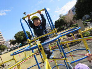 到着するなり、いつも遊んでいる公園には無い遊具がいっぱいで、「わ~~~」と遊具に向かっていく姿がとっても可愛かったです💕