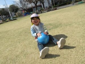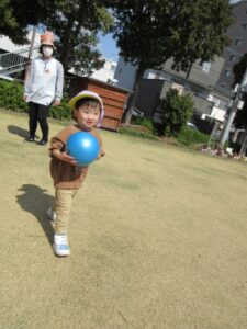 その後は、おおかみさんの鬼ごっこや、ボール遊びも楽しみ、お腹はぺっこぺこ