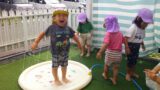 信頼の手つなぎで出発、魚センターはお散歩コース。