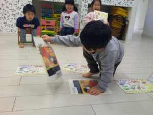 お絵描きしていると、「ぼく年賀状もらったよ」「おうちにも来たよ!」と、年賀状のお話に。