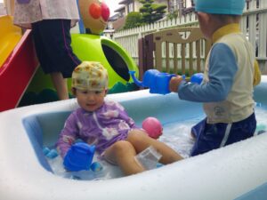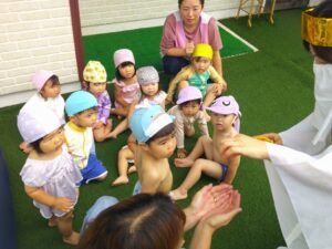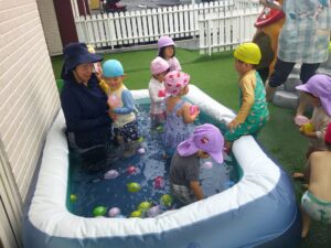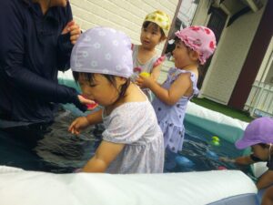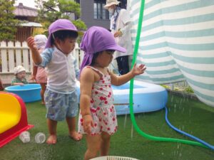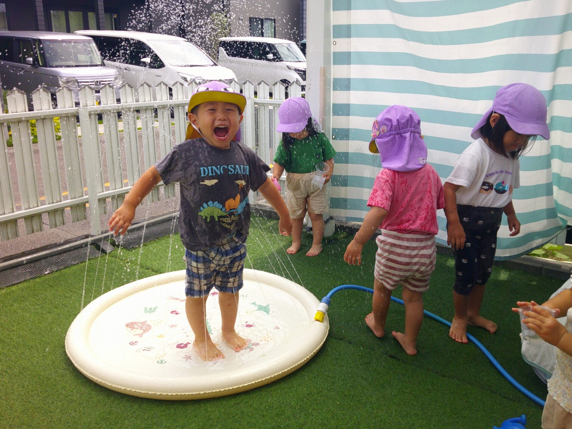 暑い日が続き、園では水あそび・プールが大人気。元気な声が飛び交っています😊