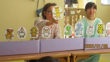 「ふうせんつき」ポーン ポーン 意外とじょうずに風船があがっている