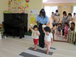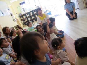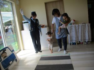 未分類焼津警察署の交通指導員さんが来園してくださり交通教室を行いました。