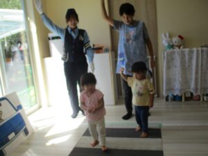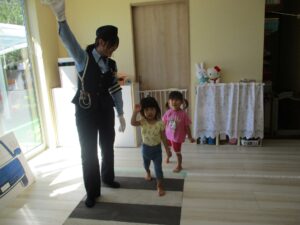 焼津警察署の交通指導員さんが来園してくださり交通教室を行いました。