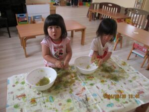 8月の食材は「かんてん」でした。8月のおやつにかんてんを使用したゼリー等がたくさん登場。ひんやりと美味しくいただきましたね。