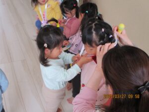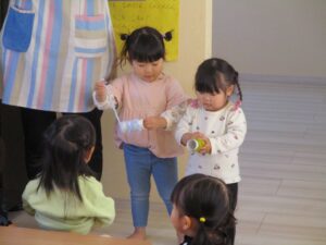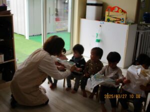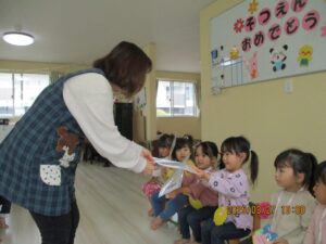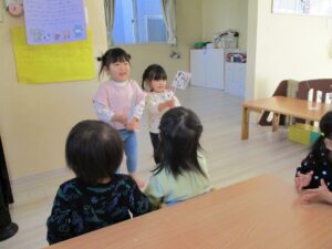 未分類お当番さんのあいさつ、うたのお手伝いをぱんだ組さんと一緒にやったうさぎ組さん。しっかりバトンタッチできそうですよ。頼もしいうさぎ組さんです。